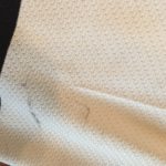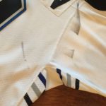 Jersey shows heavy wear, which is pretty typical for jerseys from that area. Has a few repaired holes. This jersey was worn during the Stanley Cup Winning Season.