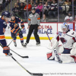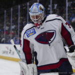 Game worn 2024-2025 season. Gibson played in 14 games with 12 wins and .933 saves percentage.