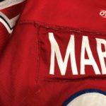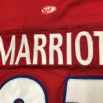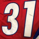 Nicer OT heavyweight jersey with nice wear. Some type of patch appears to have been removed, although the thread is there.