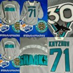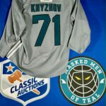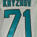 Obtained from the San Jose Sharks Foundation. Worn by #71 Nikolai Knyzhov.