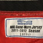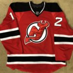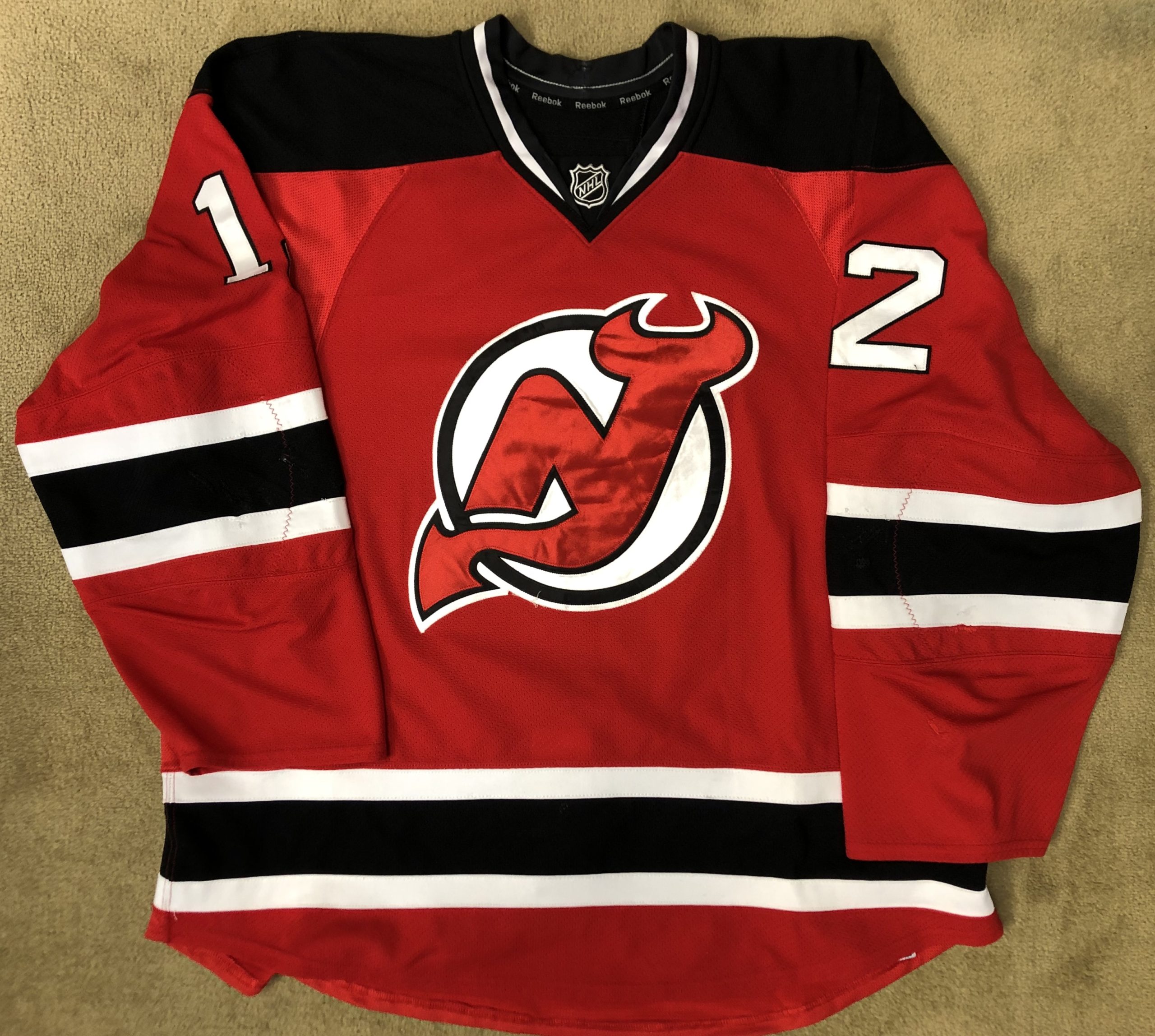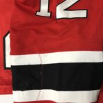 This appears to be the 5th number Nick wore with the Devils in 3 years. 62, 16, 32, 10 and finally #12. The photo match I have appears to be a good sized hole on the sleeve - before it was repaired. The repair and distortion on a seam in the same area match up.