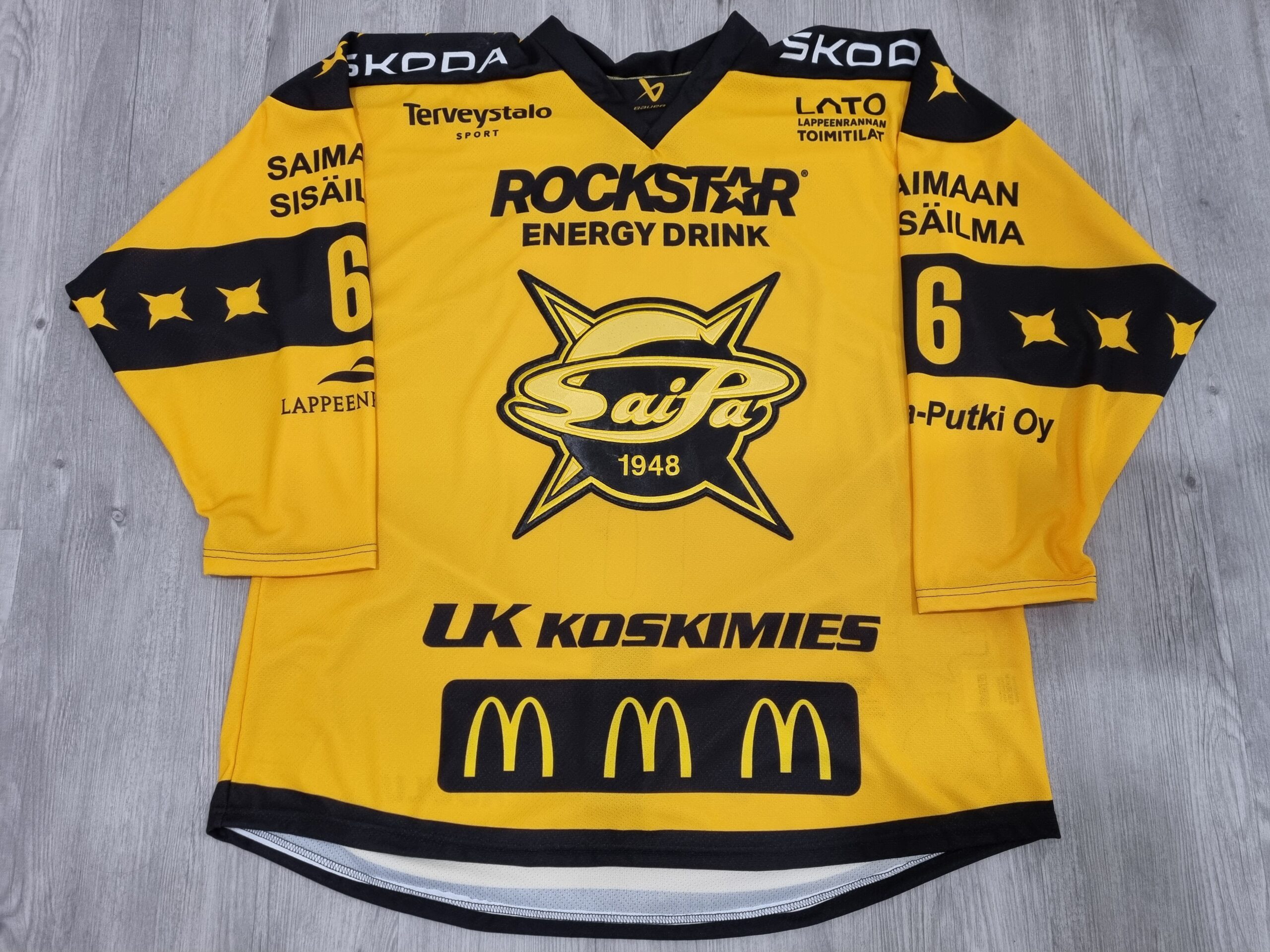 Features: Game-issued Santeri Airola jersey from SaiPa's successful 2024-2025 season, during which SaiPa reached the Liiga finals for the first time in the club's history. Patches: Liiga 50, Playoffs 2025, Finaalit 2025.