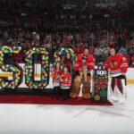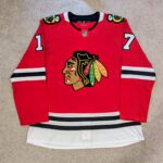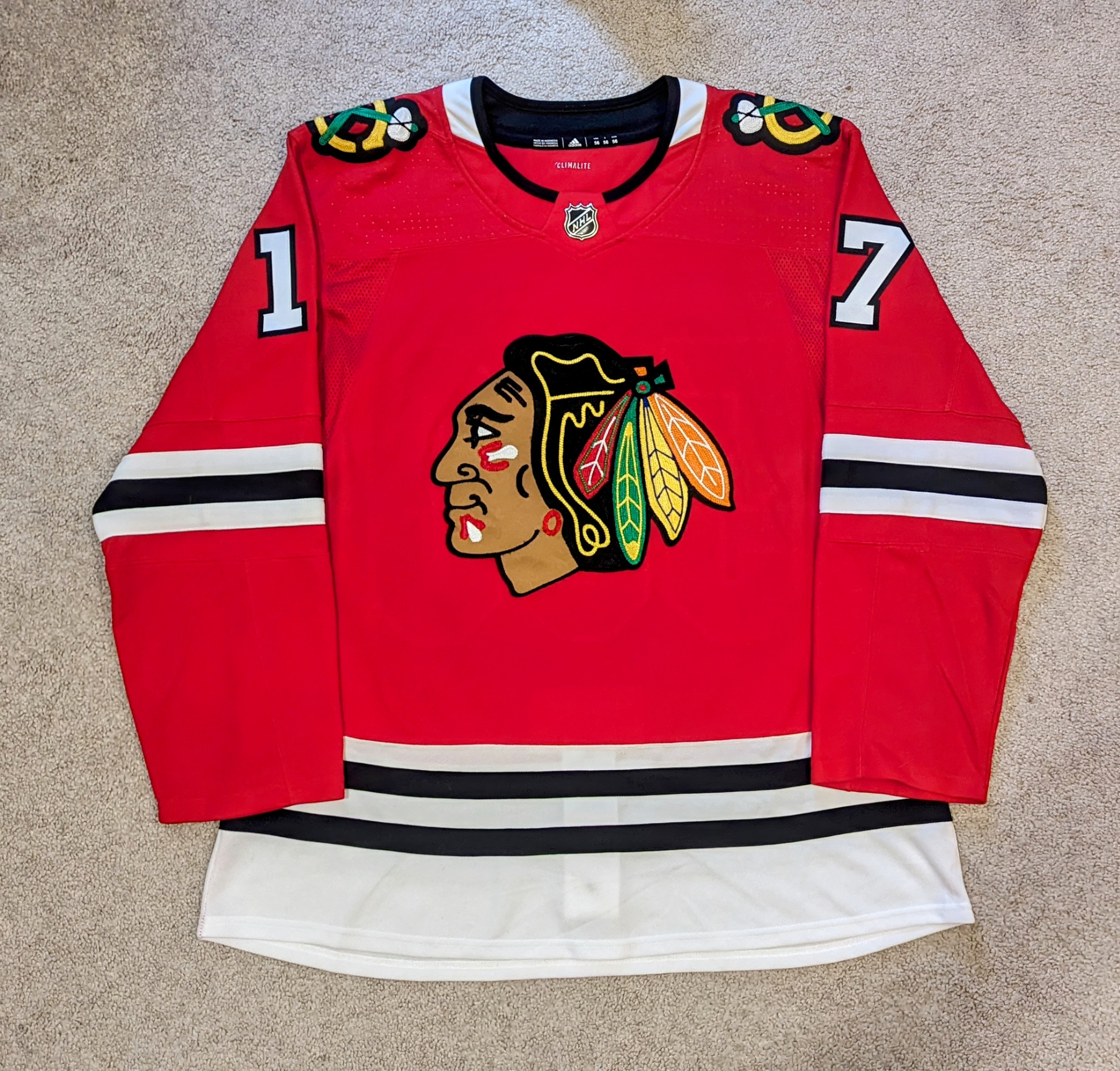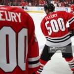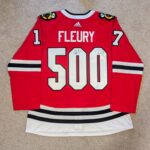 The Chicago Blackhawks honored Marc-Andre Fleury's 500th career win on December 15th, 2021 against the Washington Capitals. (The celebration was meant to be held on December 13th, but was postponed as multiple Flames entered COVID protocol.) Each player wore 'Fleury 500' on the back and the jersey was signed by both Fleury and Strome. Note, this jersey is an Adidas Authentic and not an MiC.