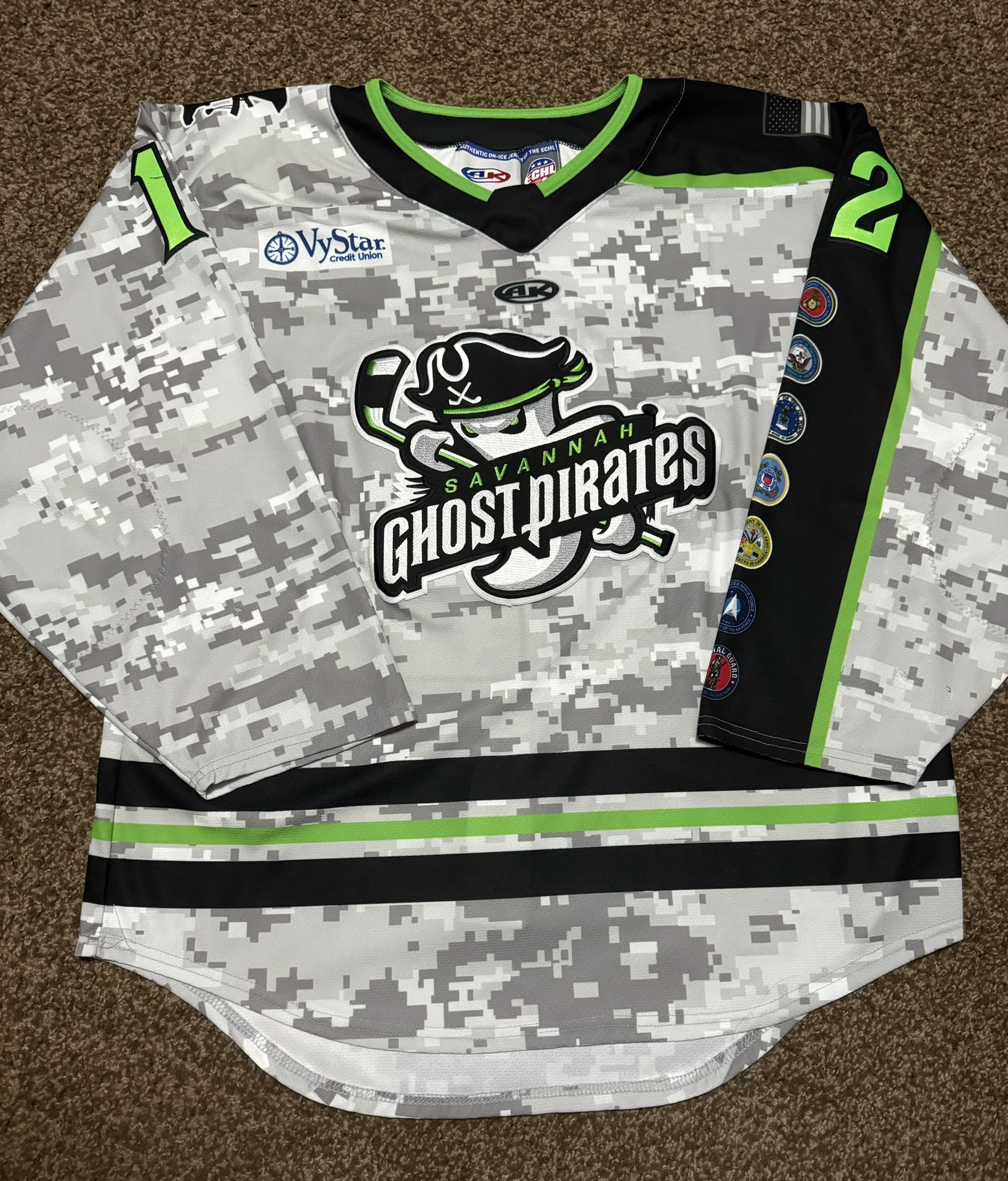 Features: Savannah Ghost Pirates Military Appreciation Jersey, 2023/24 Season.